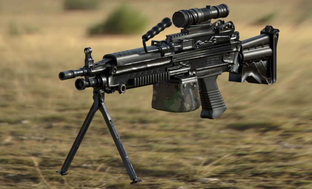 M249 is Automatic light machine gun manufactured by FN HERSTAL at Belgium. It has Range of 3600 M uses 5.56*45 mm bullets. Damages 45 per shot.